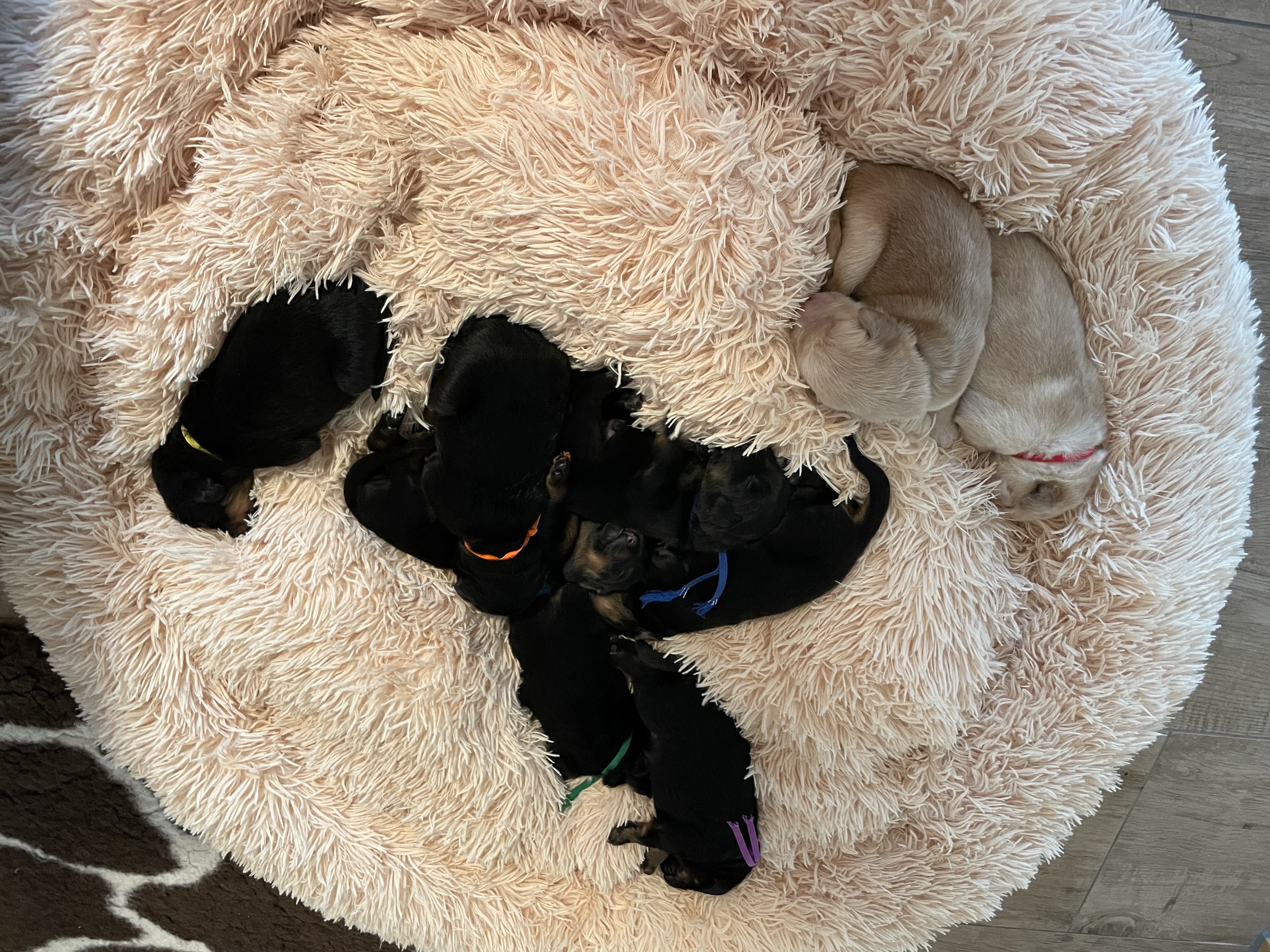 Heute sind die Welpen eine Woche alt! Das ist ein Grund zur Freude, denn für Euch bedeutet das nur noch sieben Wochen, bis sie umziehen dürfen!
