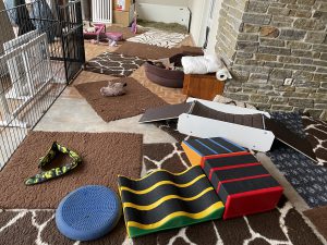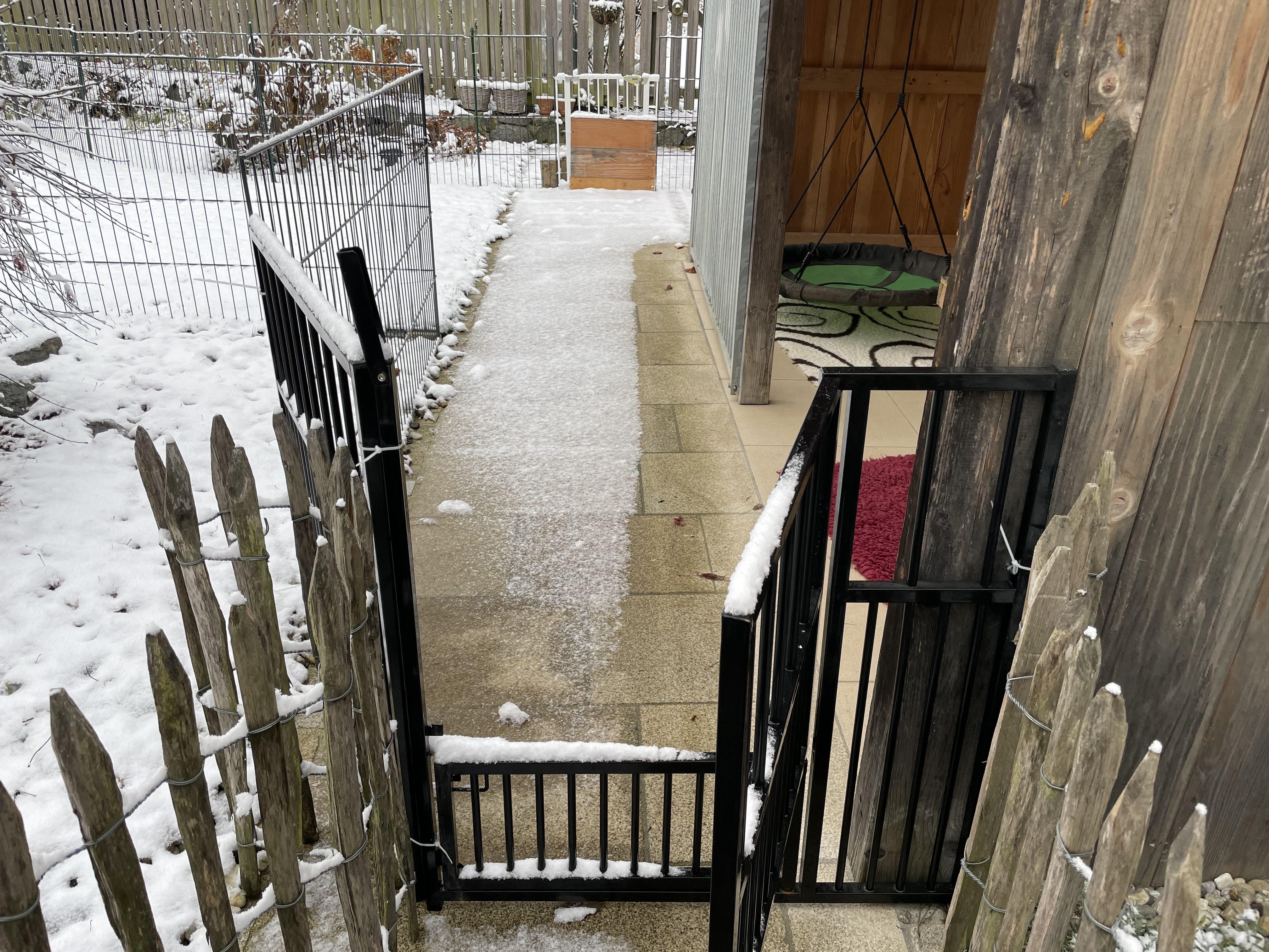 Für die Übersiedlung ist alles vorbereitet: ich werde vorangehen durch eine Schleuse, die wir nur noch mit ein paar Gittern zu machen können. So werden sie nicht einzeln getragen, sondern können selbst laufen und alles erkunden. Sie gelangen in wenigen Metern vom kleinen in den Gartenauslauf.