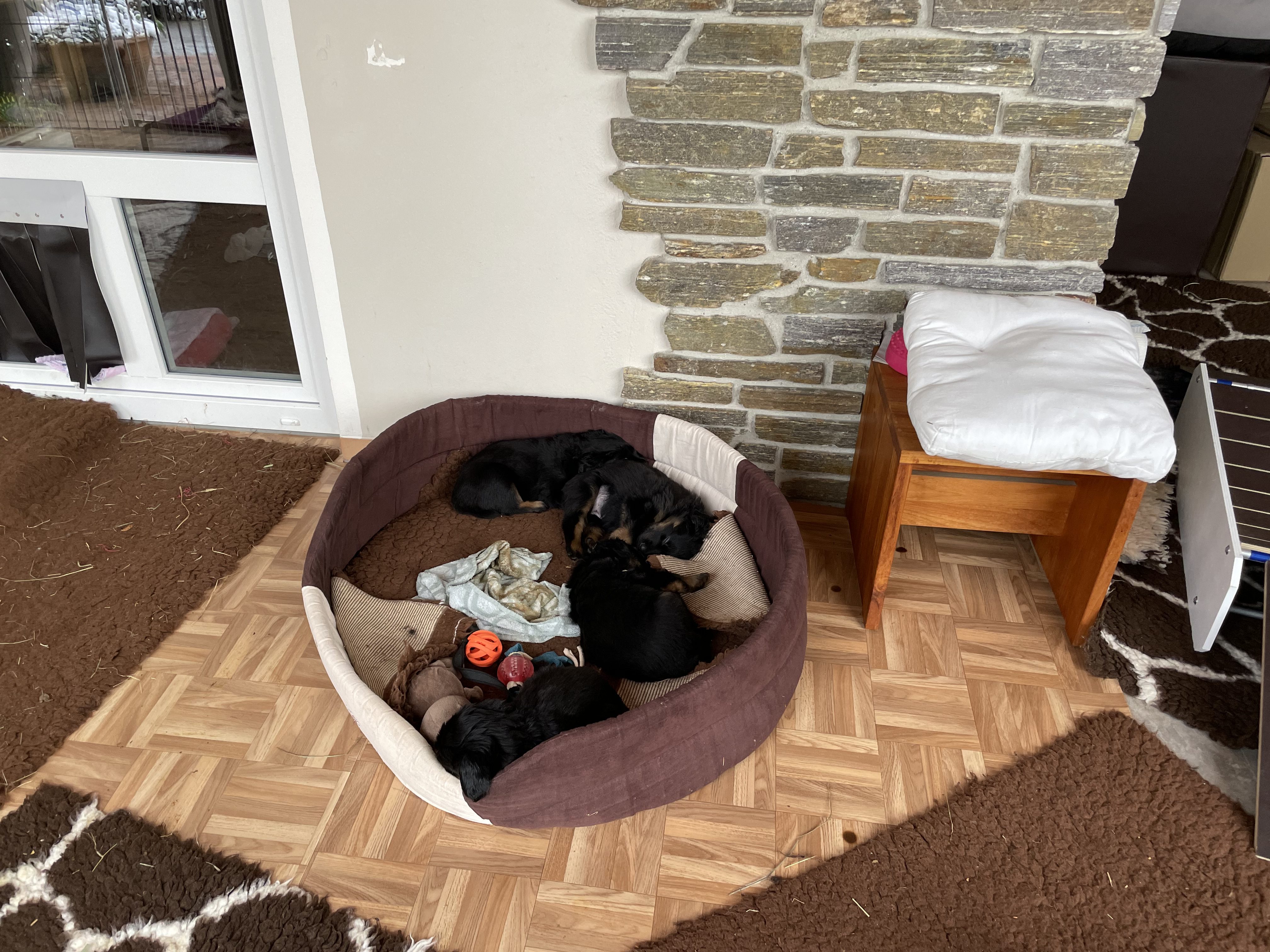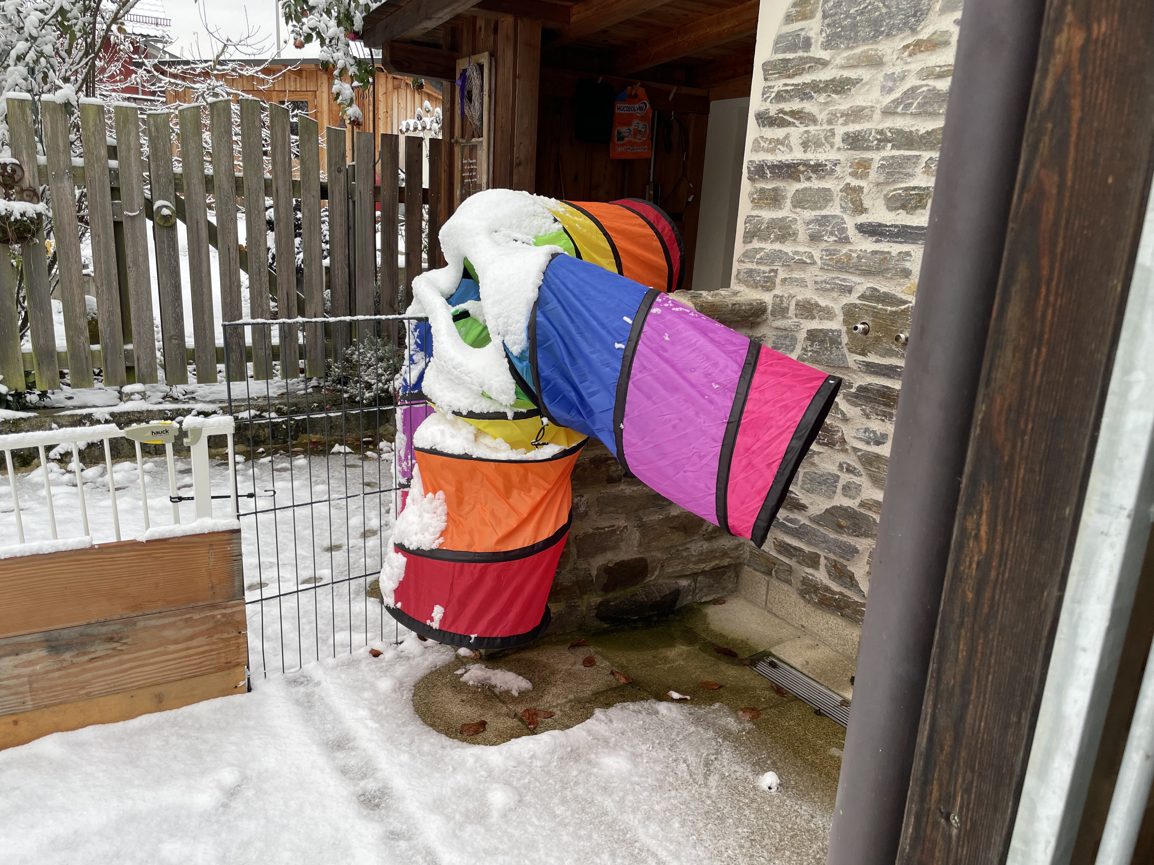 Draussen warten momentan ein trauriger Tunnel, eine zugeschneite Liege und unser Hundehaus darauf, von neun kleinen Welpen erobert zu werden und wir sind schon sehr gespannt, was sie zu ihrer neuen Freiheit sagen werden!